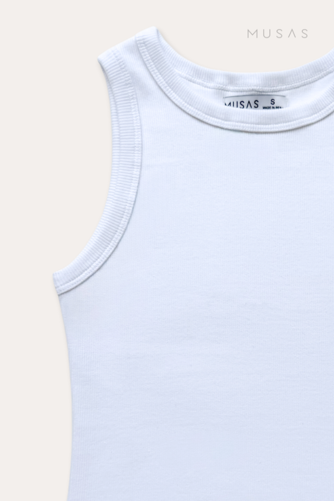 Un esencial que se ajusta a tu cuerpo sin perder comodidad. Su tela rib acanalada y corte olímpico estilizan y acompañan cada movimiento, manteniendo la forma en todo momento.