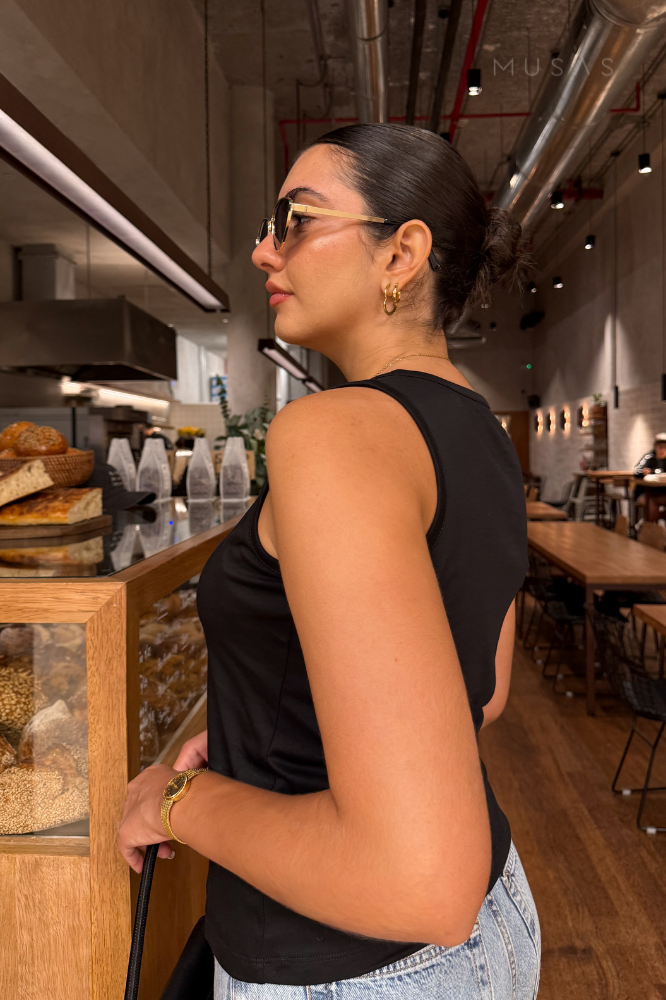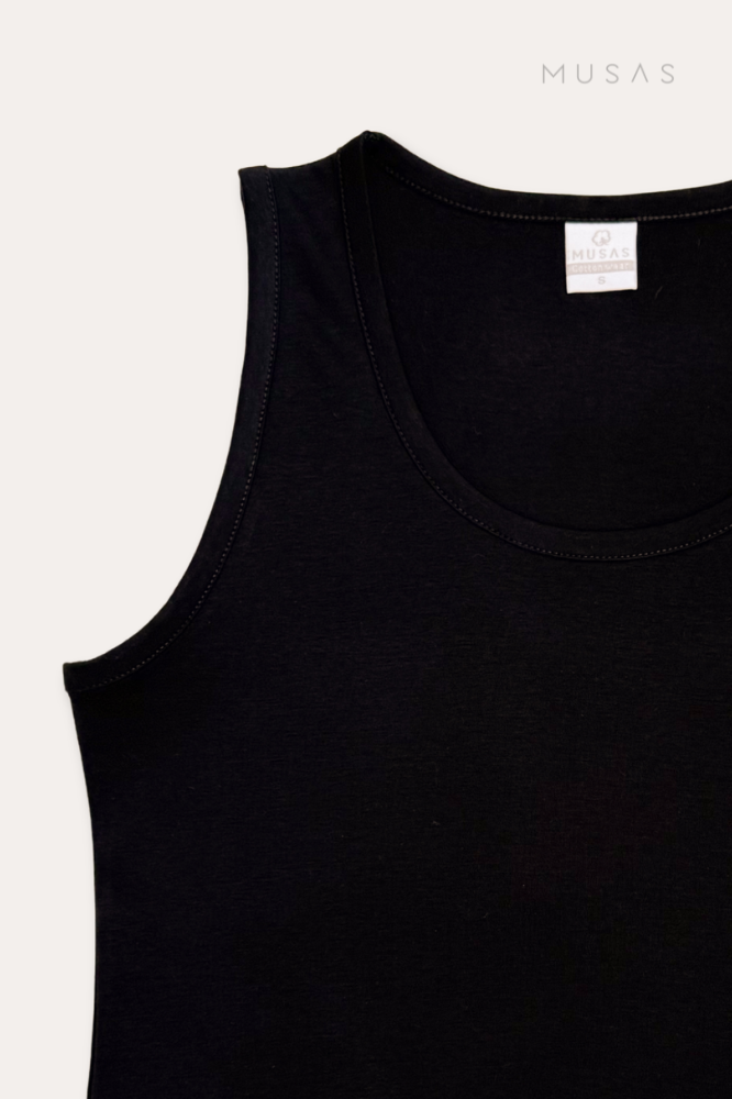 El escote redondeado aporta un acabado clásico que funciona tanto en outfits casuales como en looks más elevados. Es el bividí de algodón perfecto para verano, ya sea para usar solo o como base ligera en combinaciones en capas.