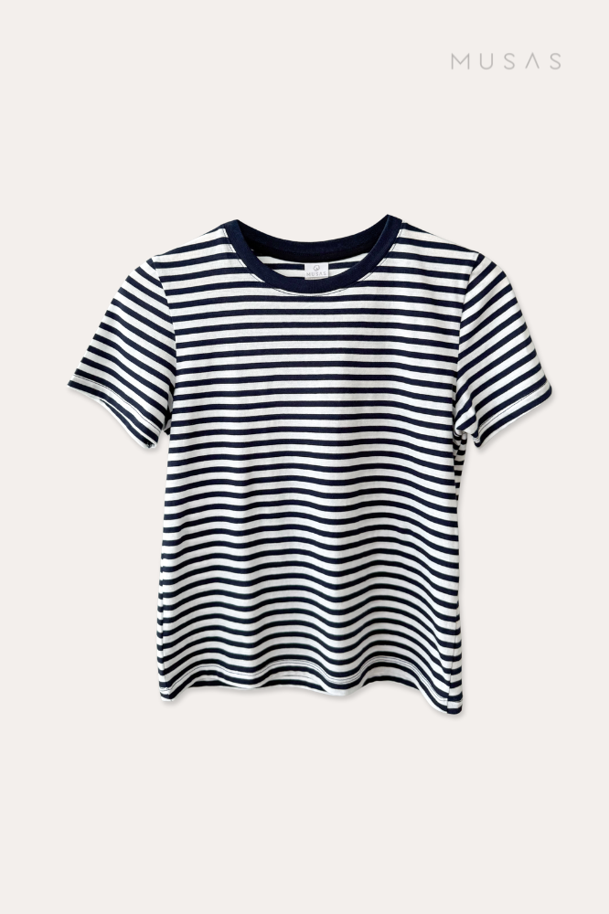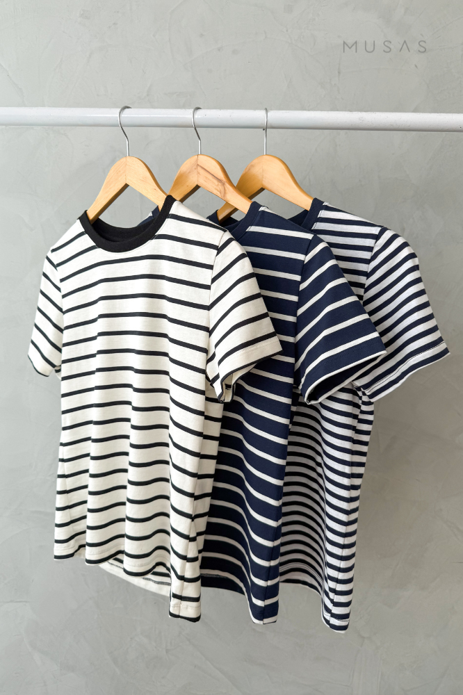 Diseño a rayas atemporal, ideal para looks casuales, urbanos y de uso diario.